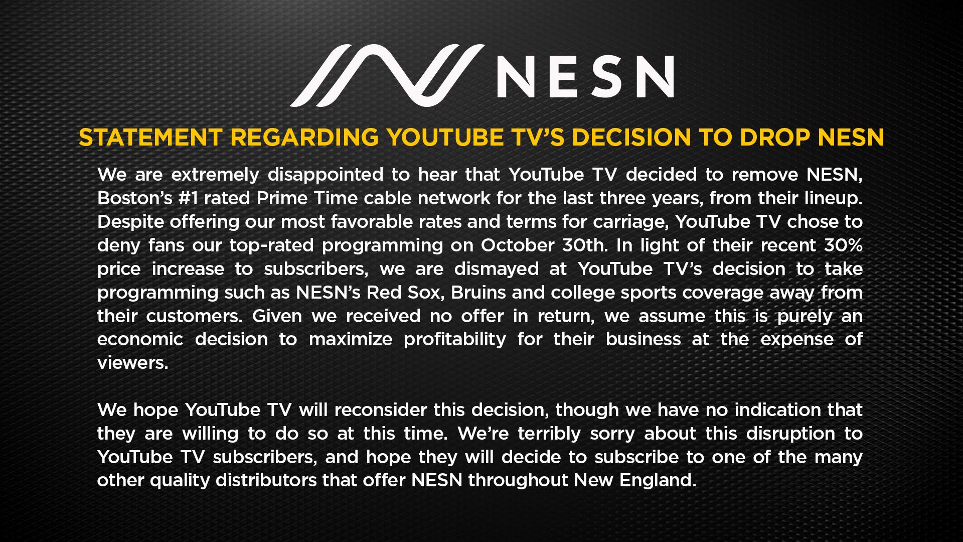 Nesn On Twitter A Statement From Us Regarding Youtube Tv S Decision To Drop Nesn Https T Co M5y9l05bbq Twitter